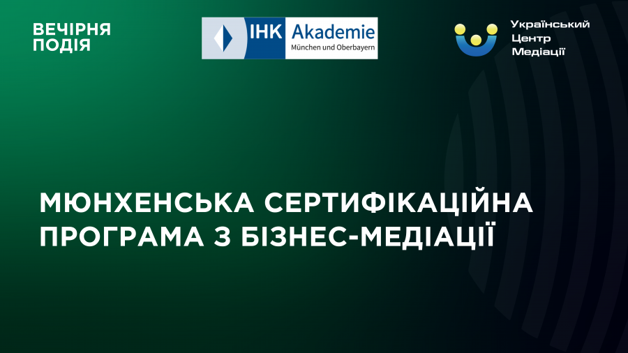 Запрошуємо на презентацію програми Мюнхенської сертифікаційної програми «Бізнес-медіатор, Wirtschaftsmediator/in Академії Мюнхенської ТПП» (220 годин, 5 модулів по 4 дні).