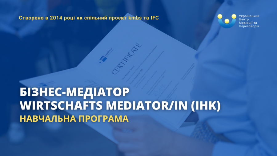 «Бізнес-медіатор» — це спеціальна програма Українського Центру Медіації та Академії Мюнхенської ТПП для тих, хто хоче розвинути навички медіації та ефективно вирішувати конфлікти у бізнес-середовищі.